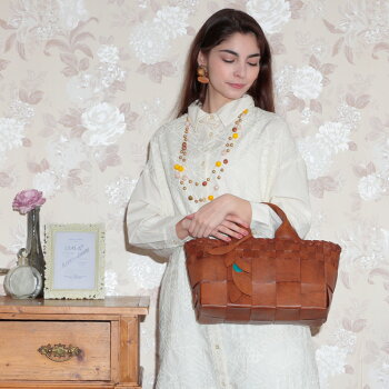 ボナ・フォルトゥーナ株式会社 TEL:03-5616-3783 商品詳細 商品番号 19321 商品名 ALBERO アルベロ 2way ハンド大 ポイント ヌメ革で丁寧に編み込まれたクラシカルな印象のカゴバッグ。