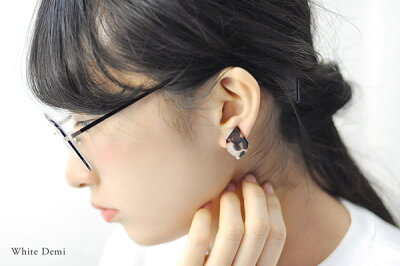 眼鏡の素材としても知られる美しいアセテート生地を使用したピアスは、シンプルでありながら上品なデザイン。