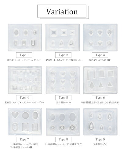 シリコンモールド 全9種類 宝石 ハート しずく 他 3Dパーツ ネイルパーツ DIY ネイルアート アートツール ジェル ネイル レジン マニキュア ジェルネイル おうち時間
